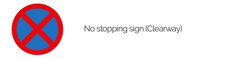 Sometimes, a no stopping sign will allow buses to stop but not other vehicles. You can easily tell the difference between this and other no stopping signs because, as well as the blue circle with red border and cross, it will also have a bus symbol and text underneath that reads “Except Buses”.