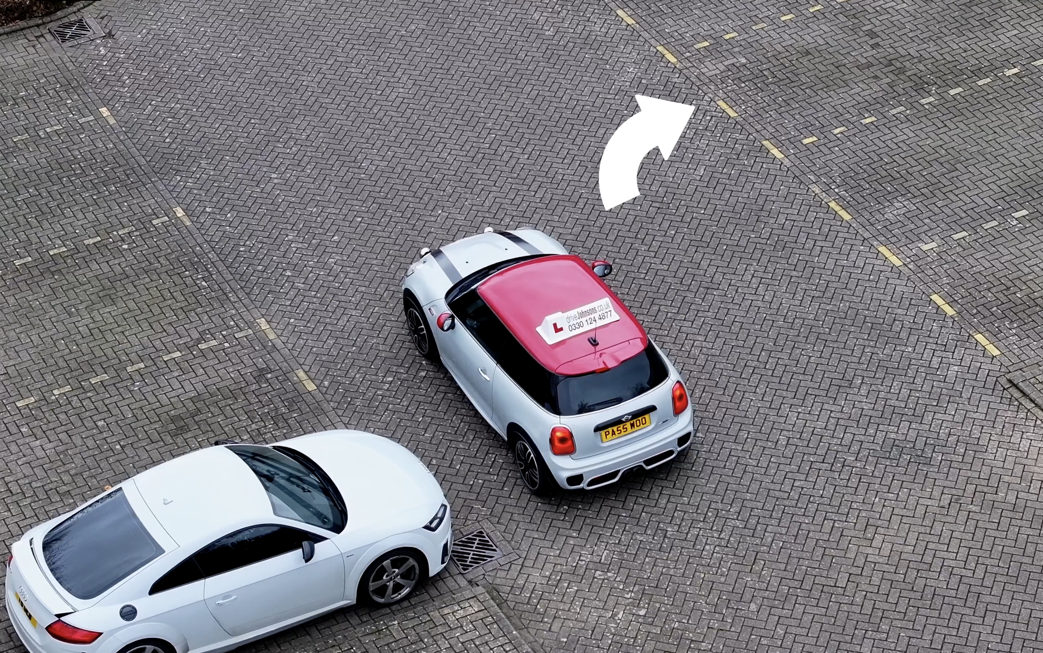 In the forward park manoeuvre, you will need to drive forward into a designated parking space, whilst carrying out observations and only moving when it is safe to move. The car must stay straight and central within the space. Once done, you will be asked to reverse out from the same space.