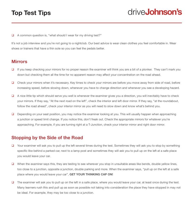 Written by the owner of driveJohnson's, Anthony Johnson, this e-book contains exclusive expert tips and tricks to help you prepare for your driving test and help you pass first time.
