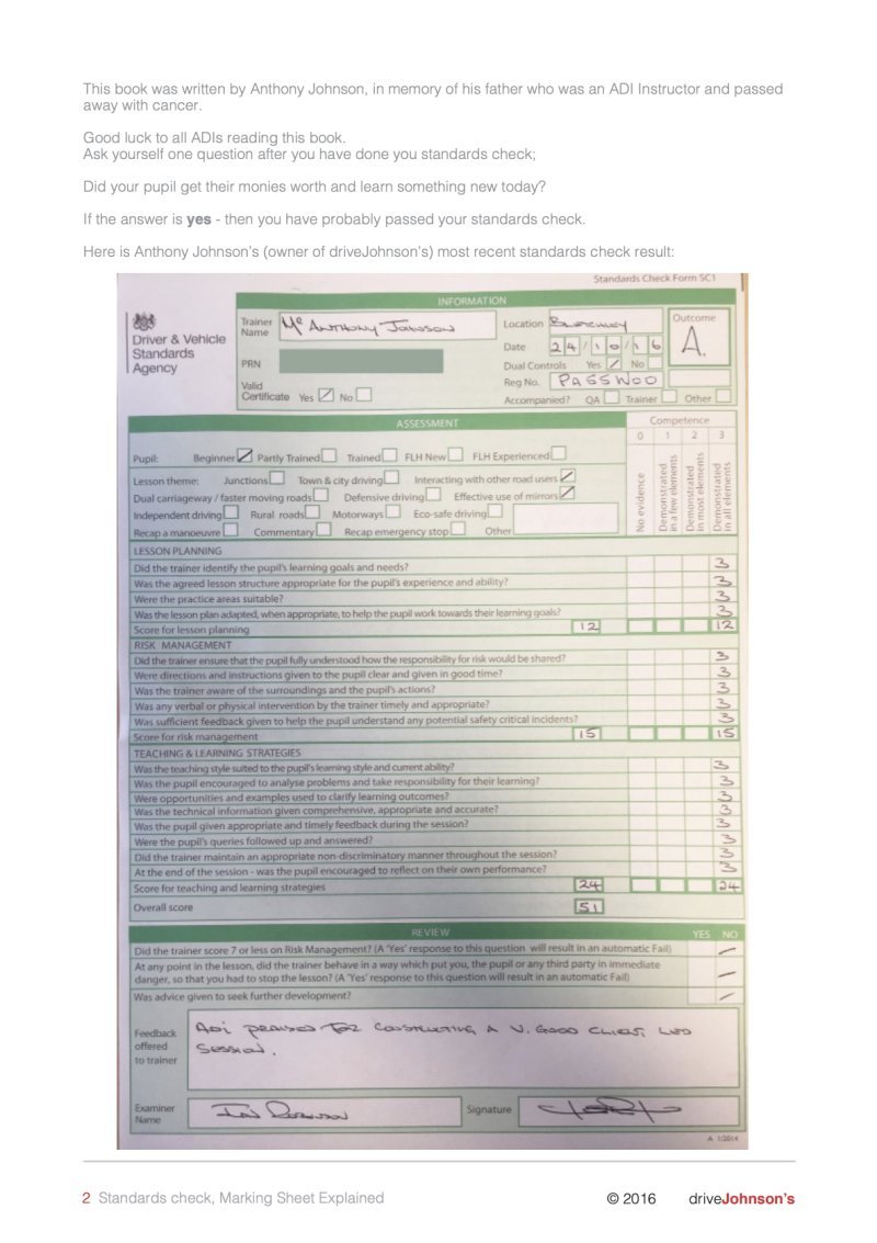 This manual was written by the owner of driveJohnson's, Anthony Johnson (Grade A, scoring 51/51), and goes through each section of the marking sheet, telling you what to do.